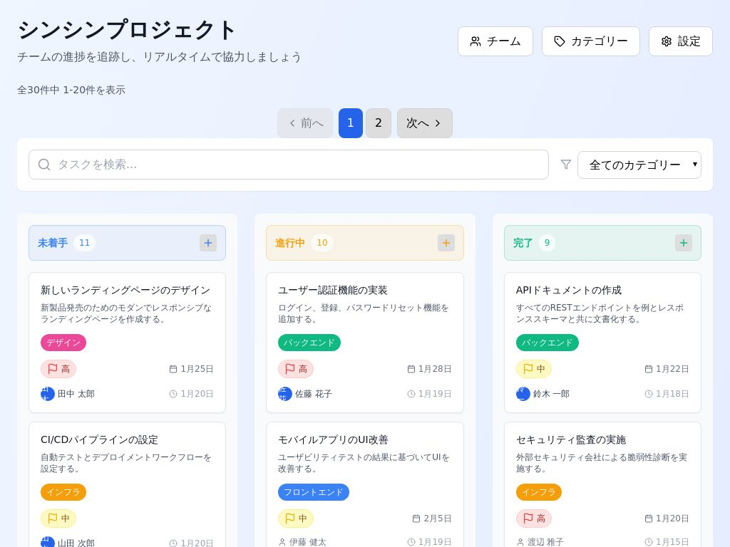 カンバン式のプロジェクト管理のUIデザインです。ドラッグアンドドロップによるタスクの移動も可能ですサービスは こちら カスタマイズやご質問などのお問合せは こちらまで お願いします